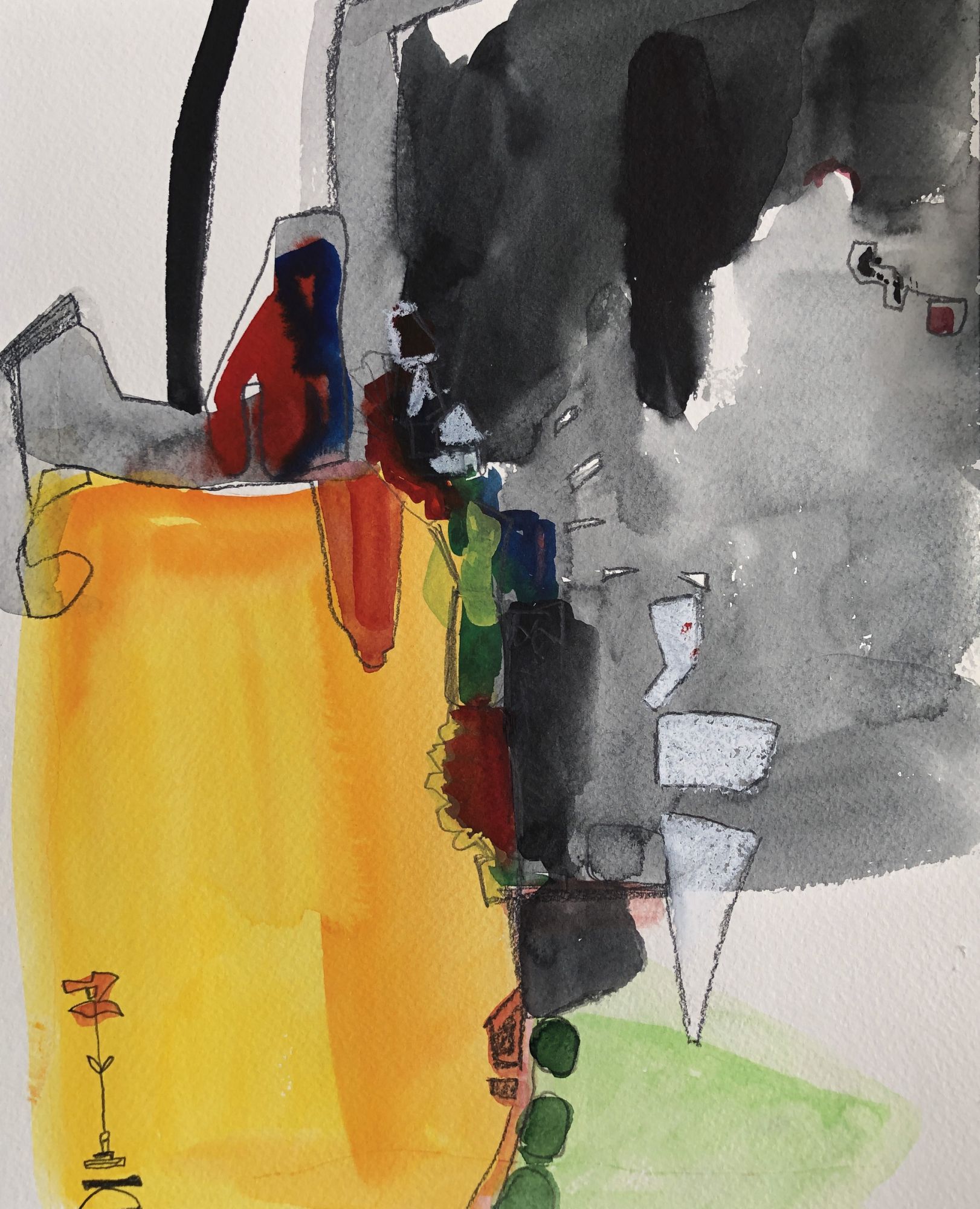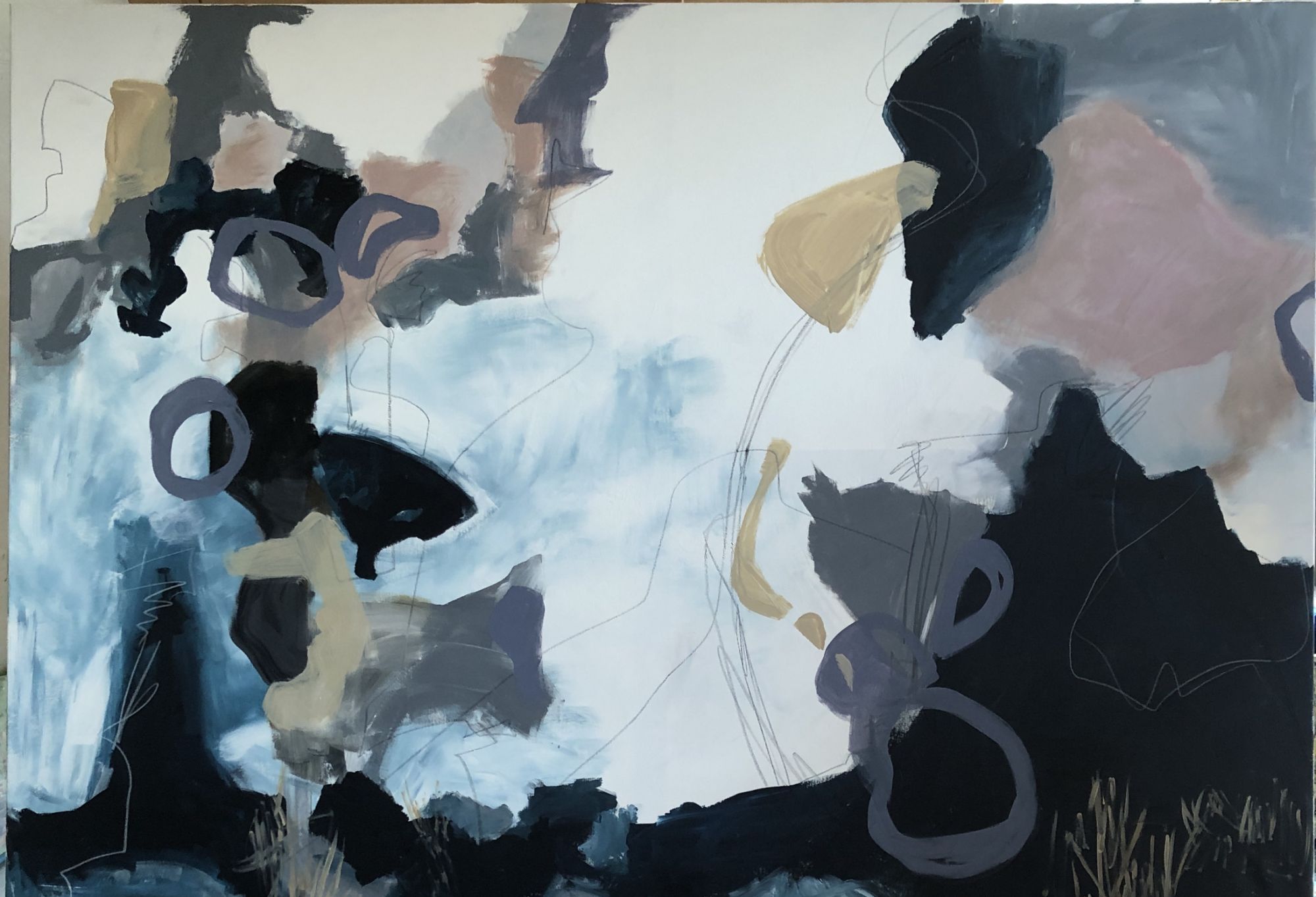 Am Anfang mit Kohle, Kreide und Acryfarben.