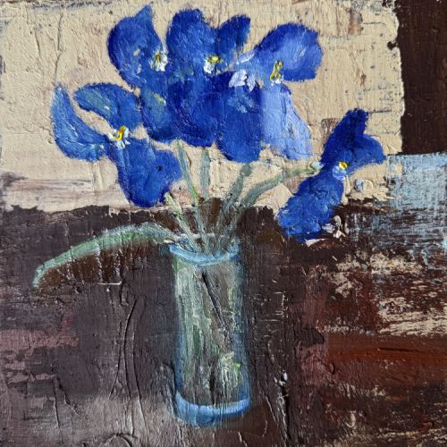 Später hautsächlich mit pastos aufgetragenen Ölmischungen auf diversen Malunterlagen.