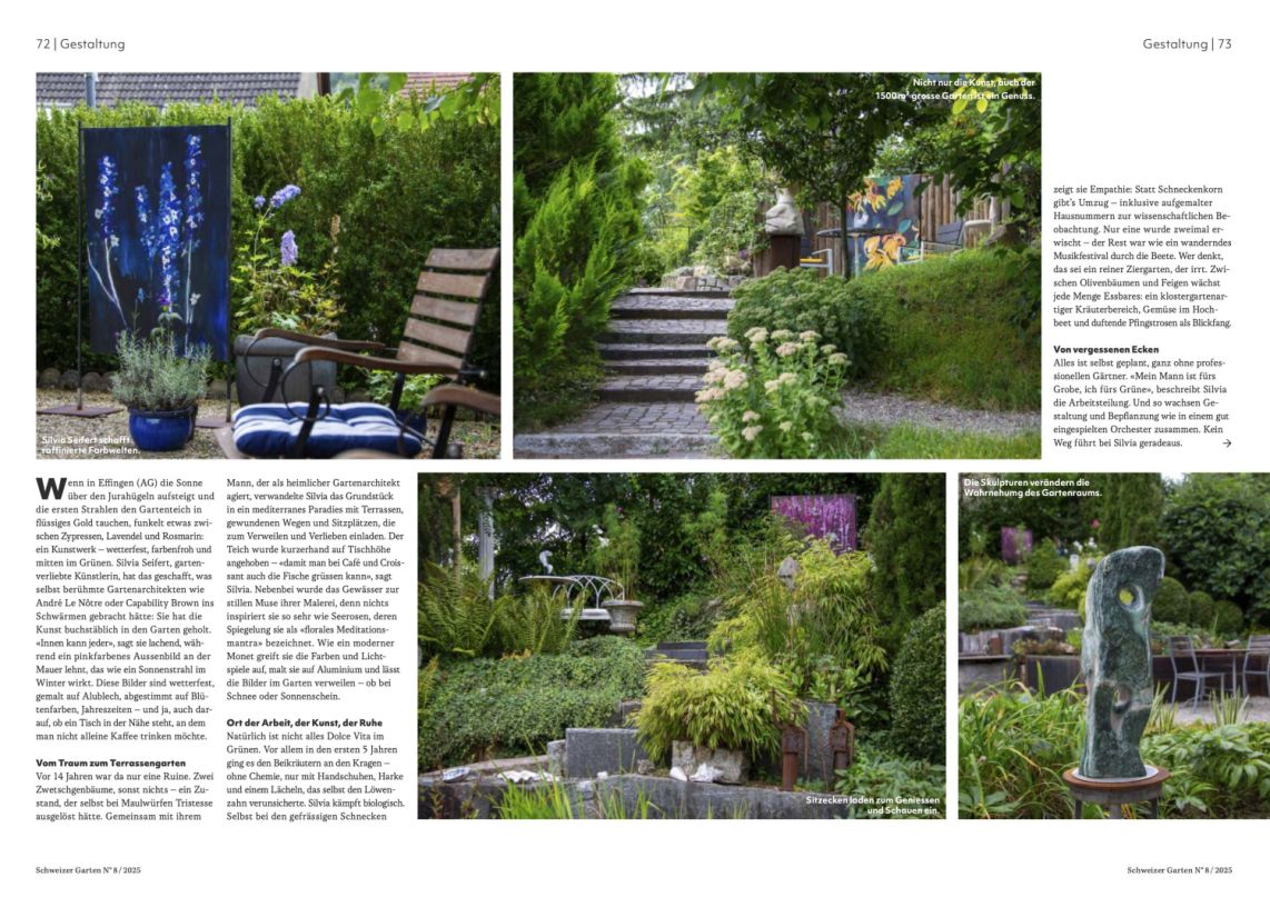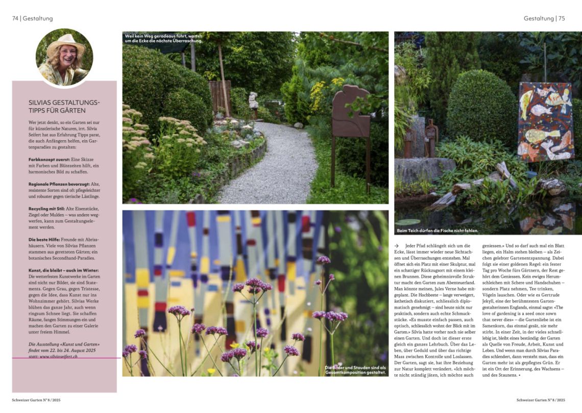 Lassen Sie sich von Silvia Seiferts neuesten Arbeiten inspirieren und erleben Sie die perfekte Symbiose von Natur und Kunst bei der diesjährigen Kunst- und Gartenausstellung in Effingen.