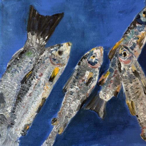 Später hautsächlich mit pastos aufgetragenen Ölmischungen auf diversen Malunterlagen.