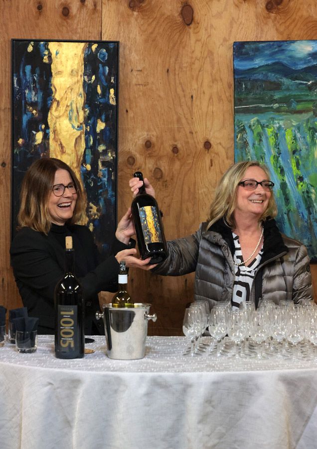 Doris Heuberger und Silvia Seifert präsentieren die Etikette für den Singular 1005 Jahrgang 2019